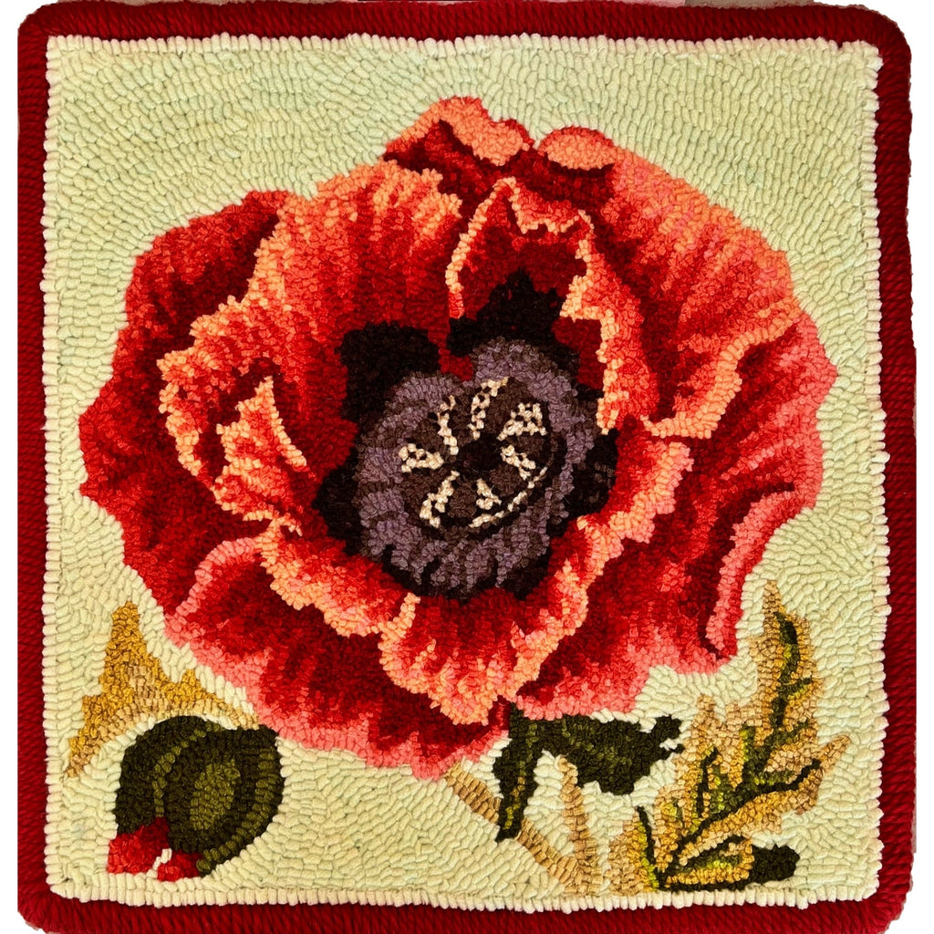 Poppy-A La O'Keefe, rug hooked by Vivily Powers