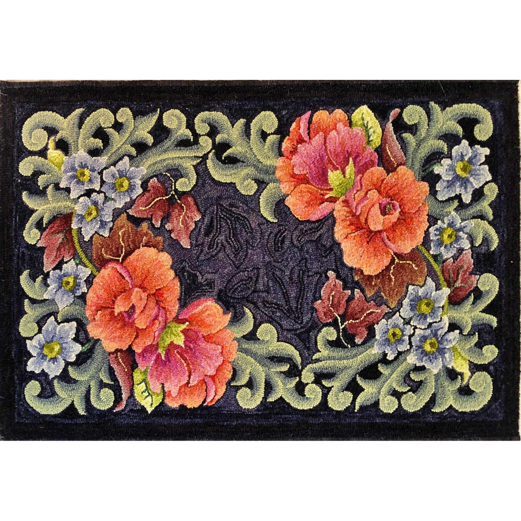 Ruthie Rose, rug hooked by Vivily PowersRuthie Rose, rug hooking pattern