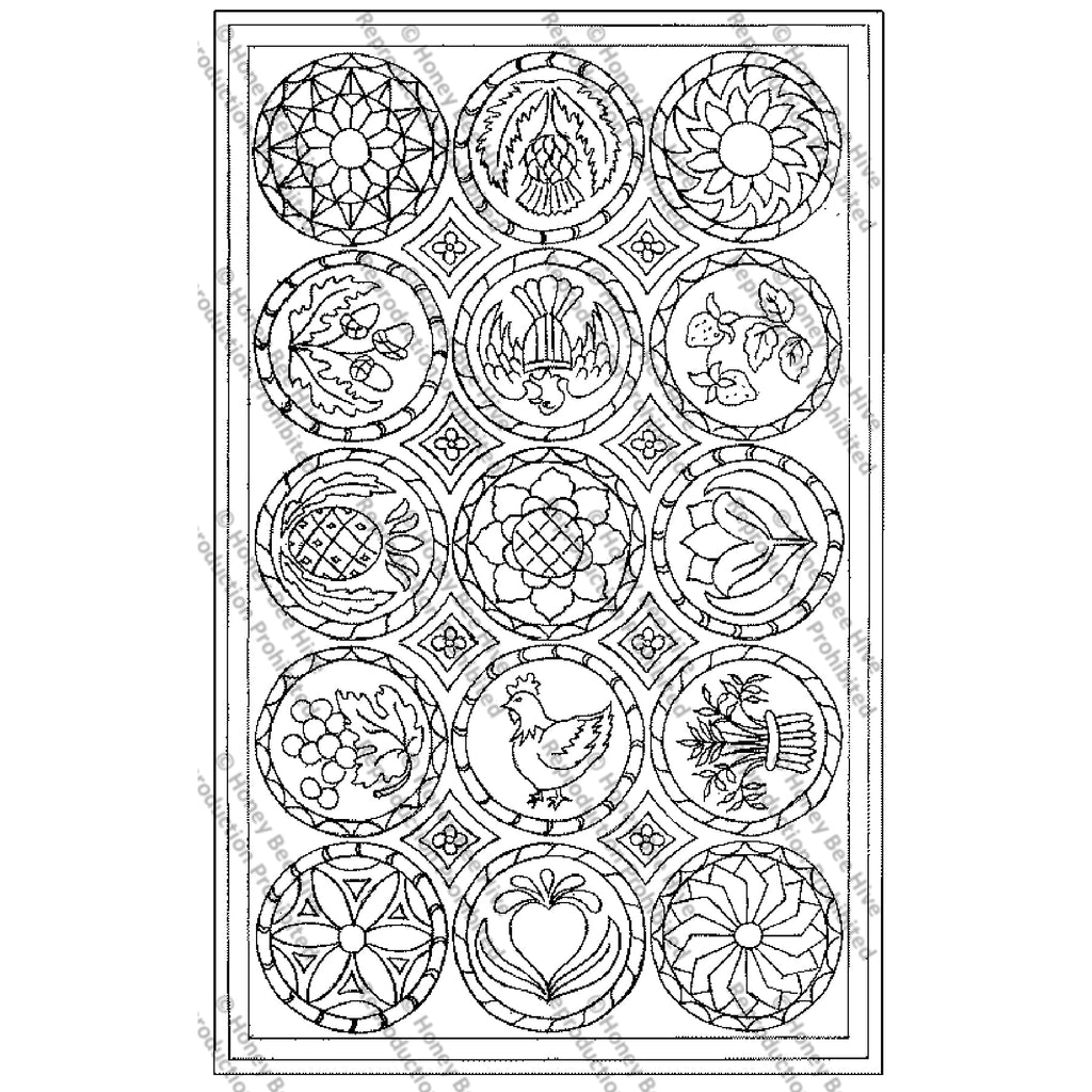 Stained Glass Mosaic, rug hooked by Stacey WattStained Glass Mosaic, rug hooking pattern