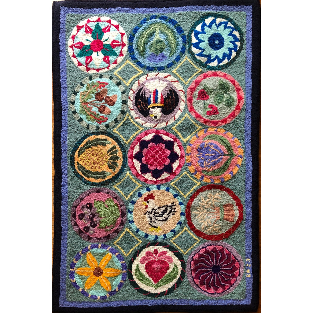 Balanced, rug hooked by Pat FredericksBalanced, rug hooking pattern