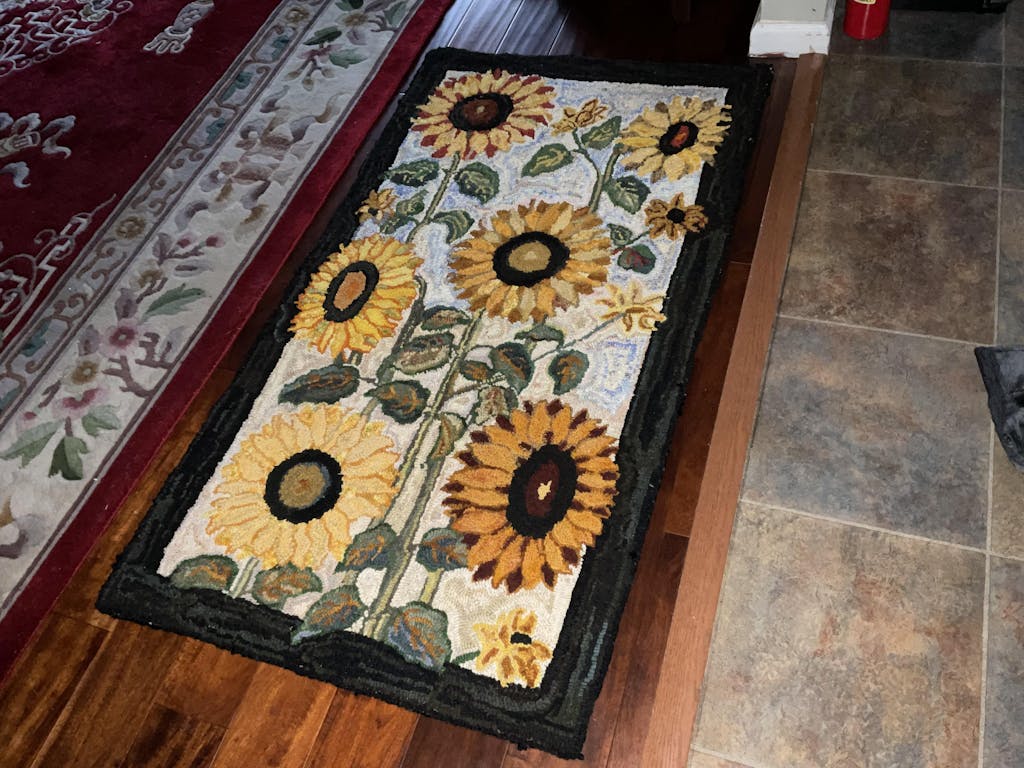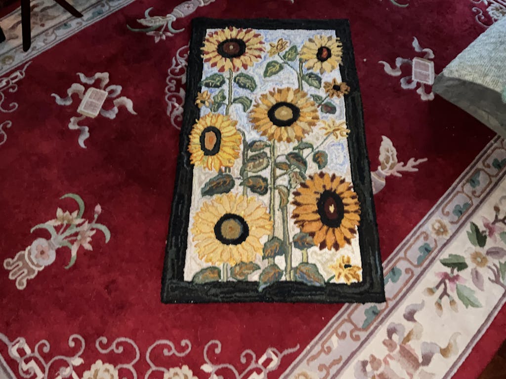 Ruthie Rose, rug hooked by Vivily PowersRuthie Rose, rug hooking pattern