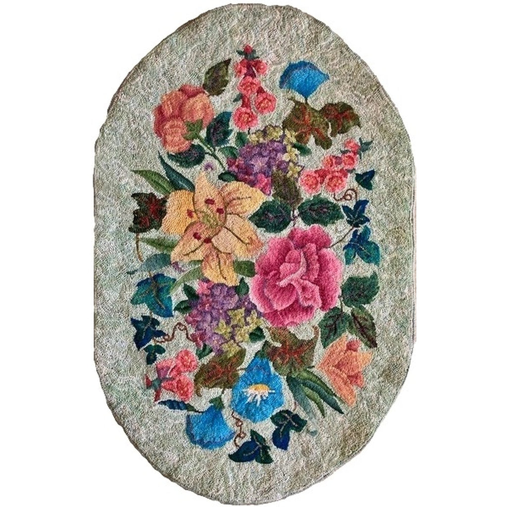 Ruthie Rose, rug hooked by Vivily PowersRuthie Rose, rug hooking pattern