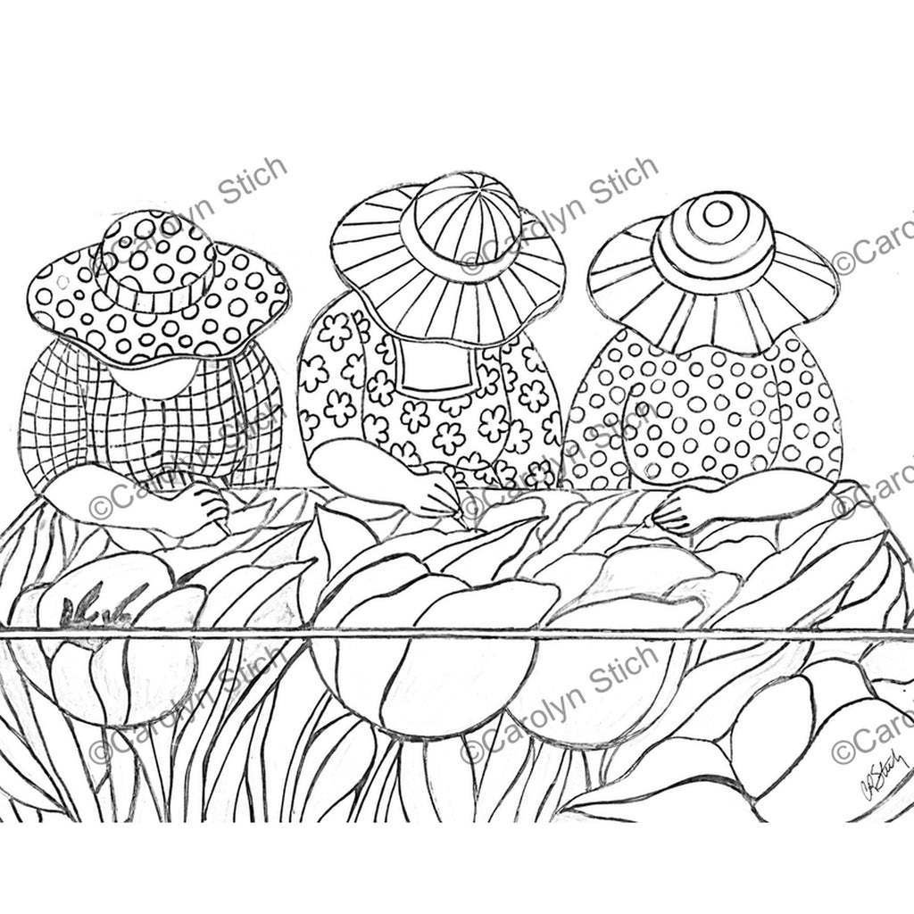 Happy Hookers, rug hooked by Sherrie PetersonHappy Hookers, rug hooking pattern