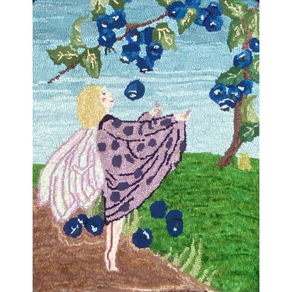 Blueberry Fairy, rug hooked by Charlene Frehlick