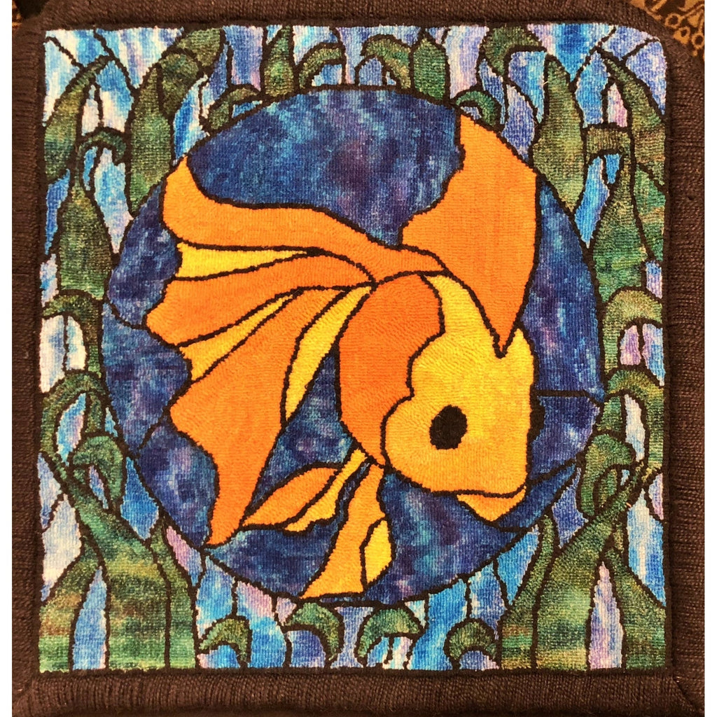 Stained Glass Fish, rug hooked by Kathleen Lynch