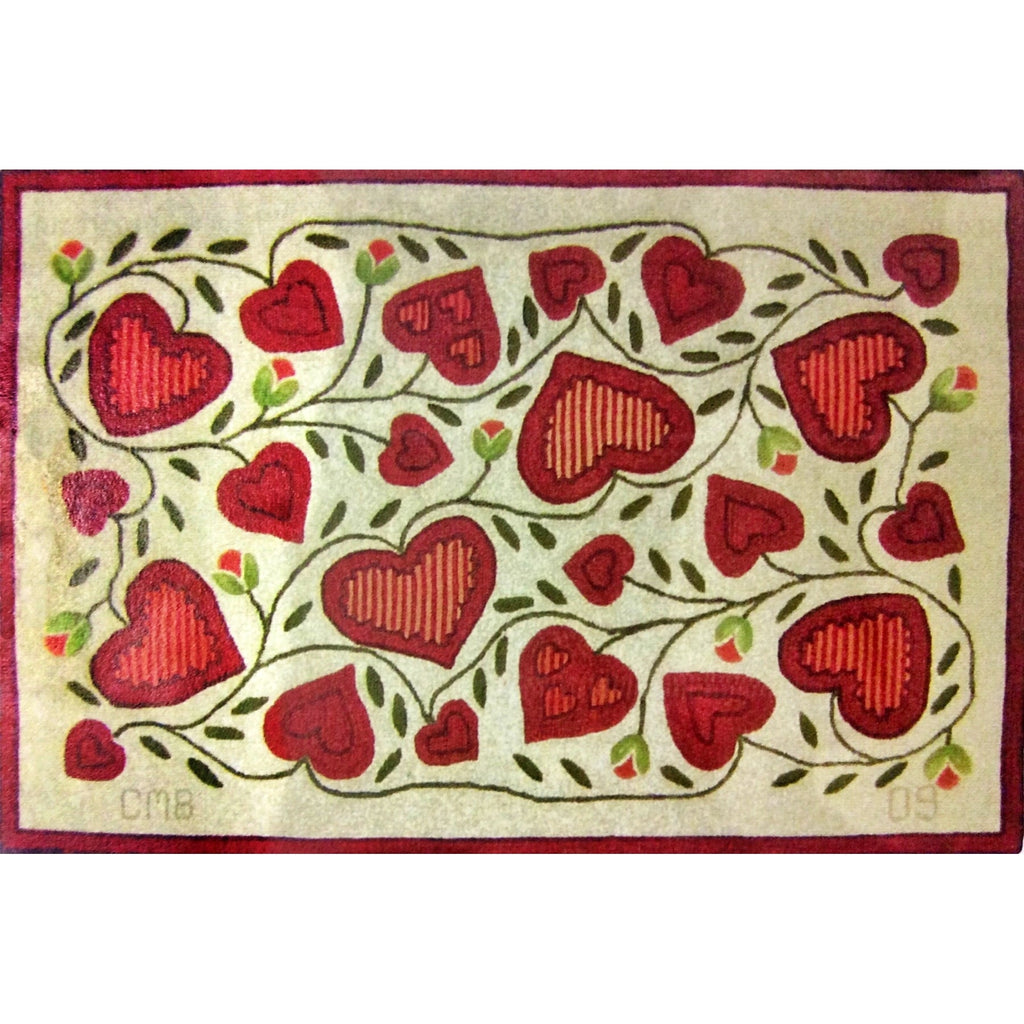 Hearts & Tulips, rug hooked by Corrine BridgeHearts & Tulips, rug hooking pattern