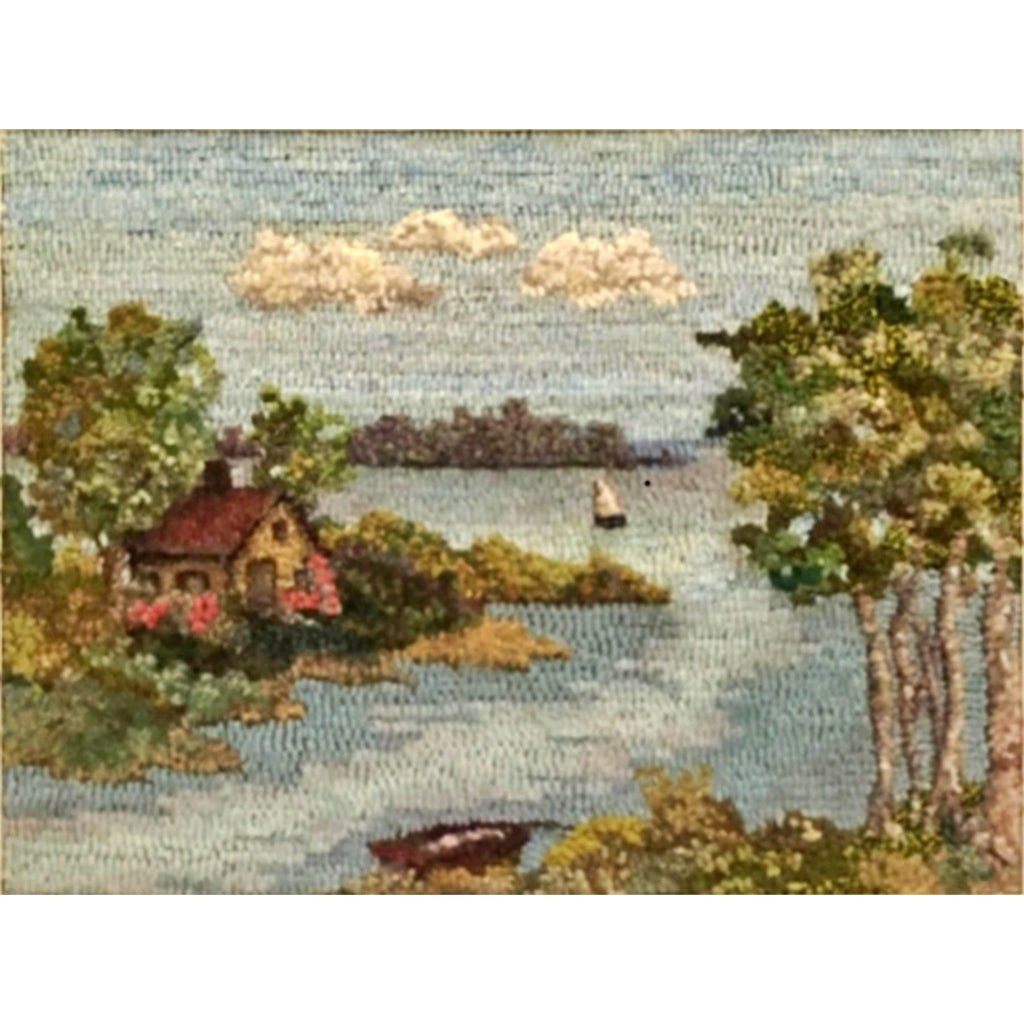 Summer Lake, rug hooked by Joyce DiGregorio