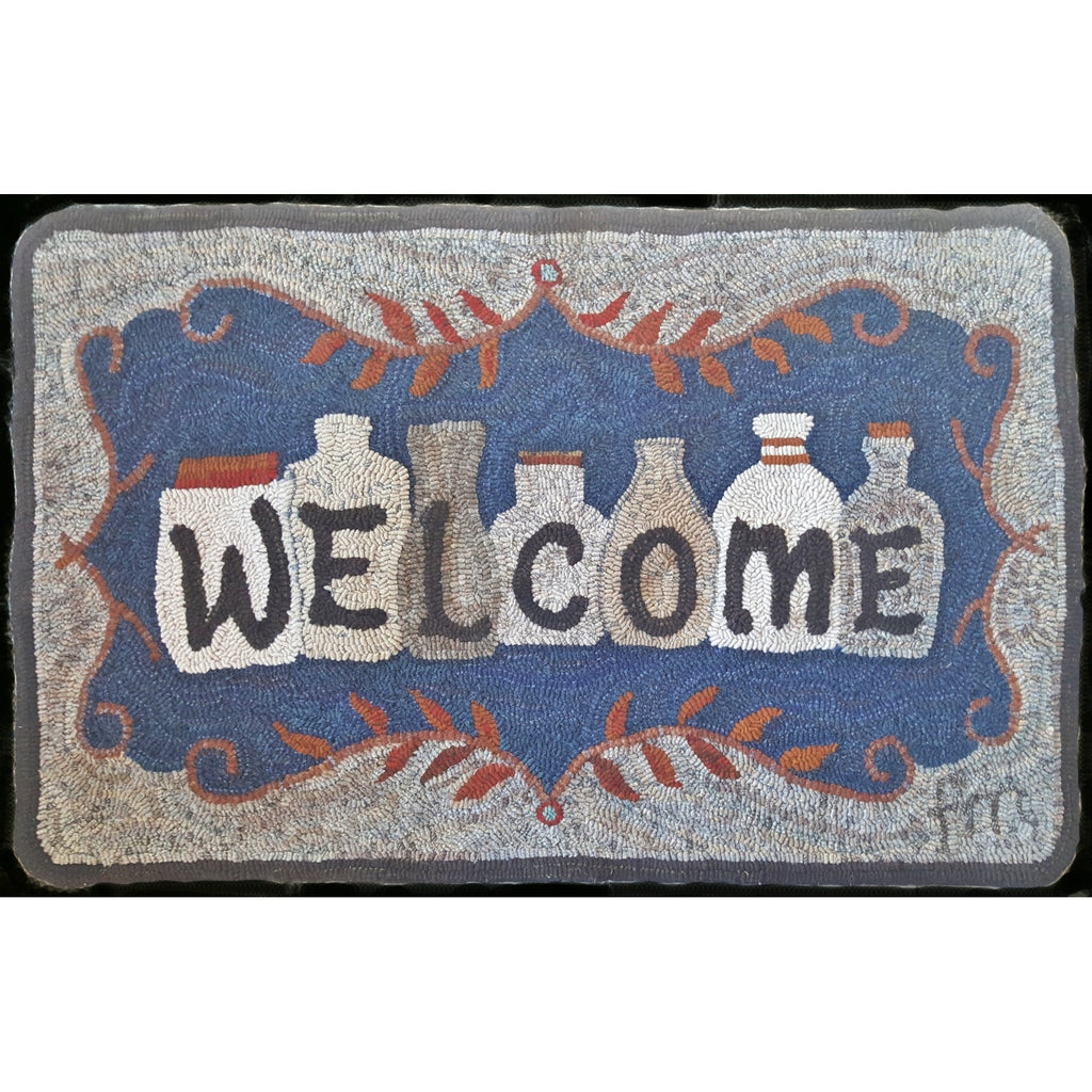 Welcome Jars, rug hooked by Ingrid HieronimusWelcome Jars, rug hooking pattern