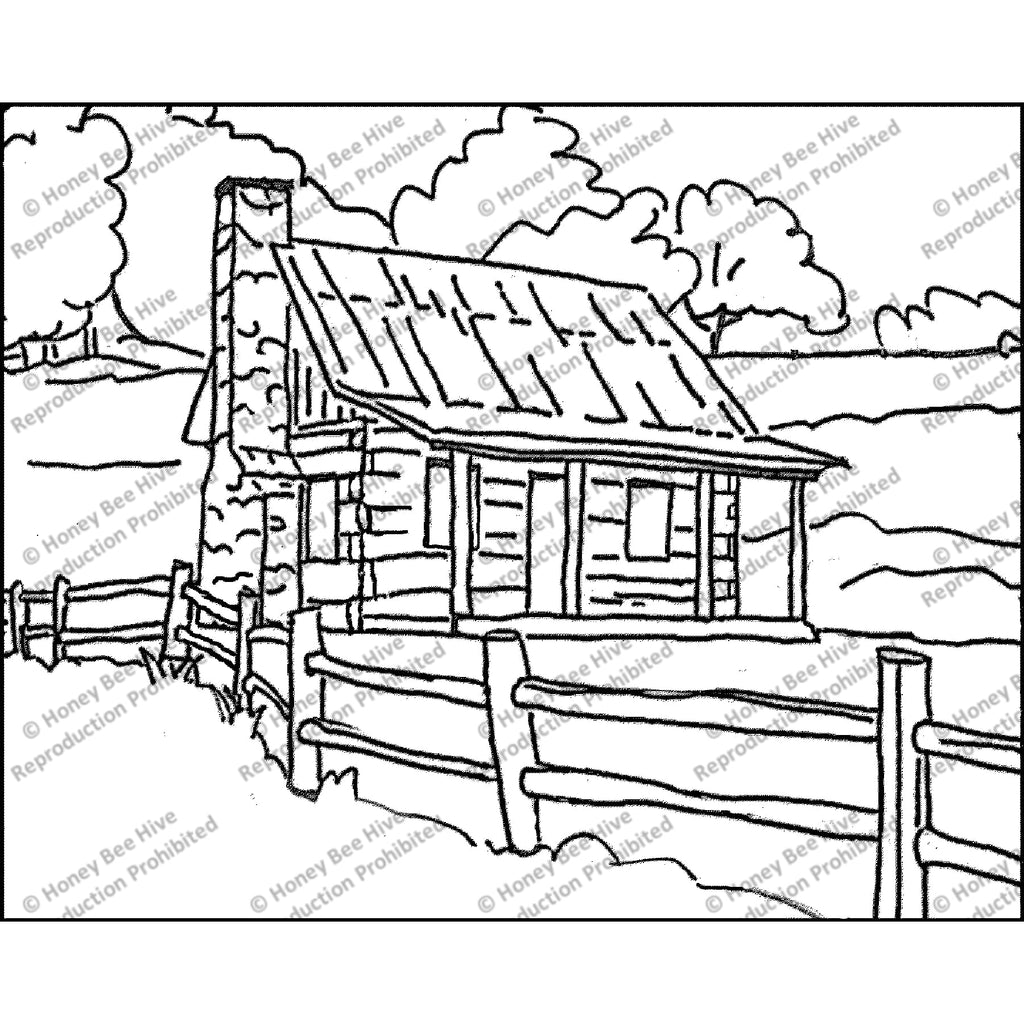 Pioneer Cabin, rug hooked by Linda PowellPioneer Cabin, rug hooking pattern