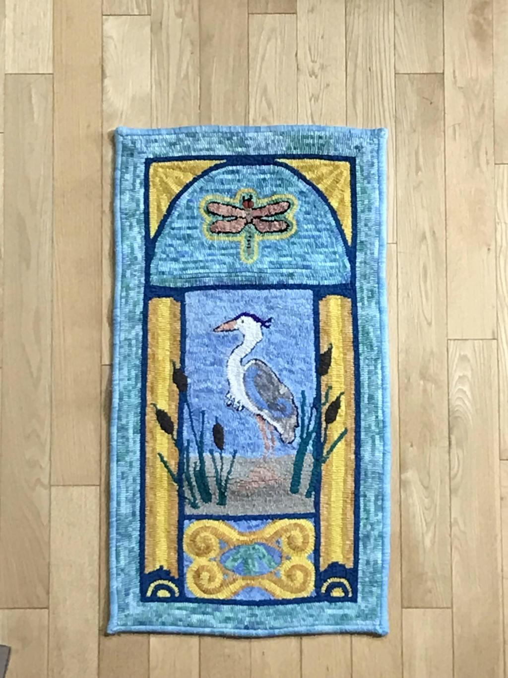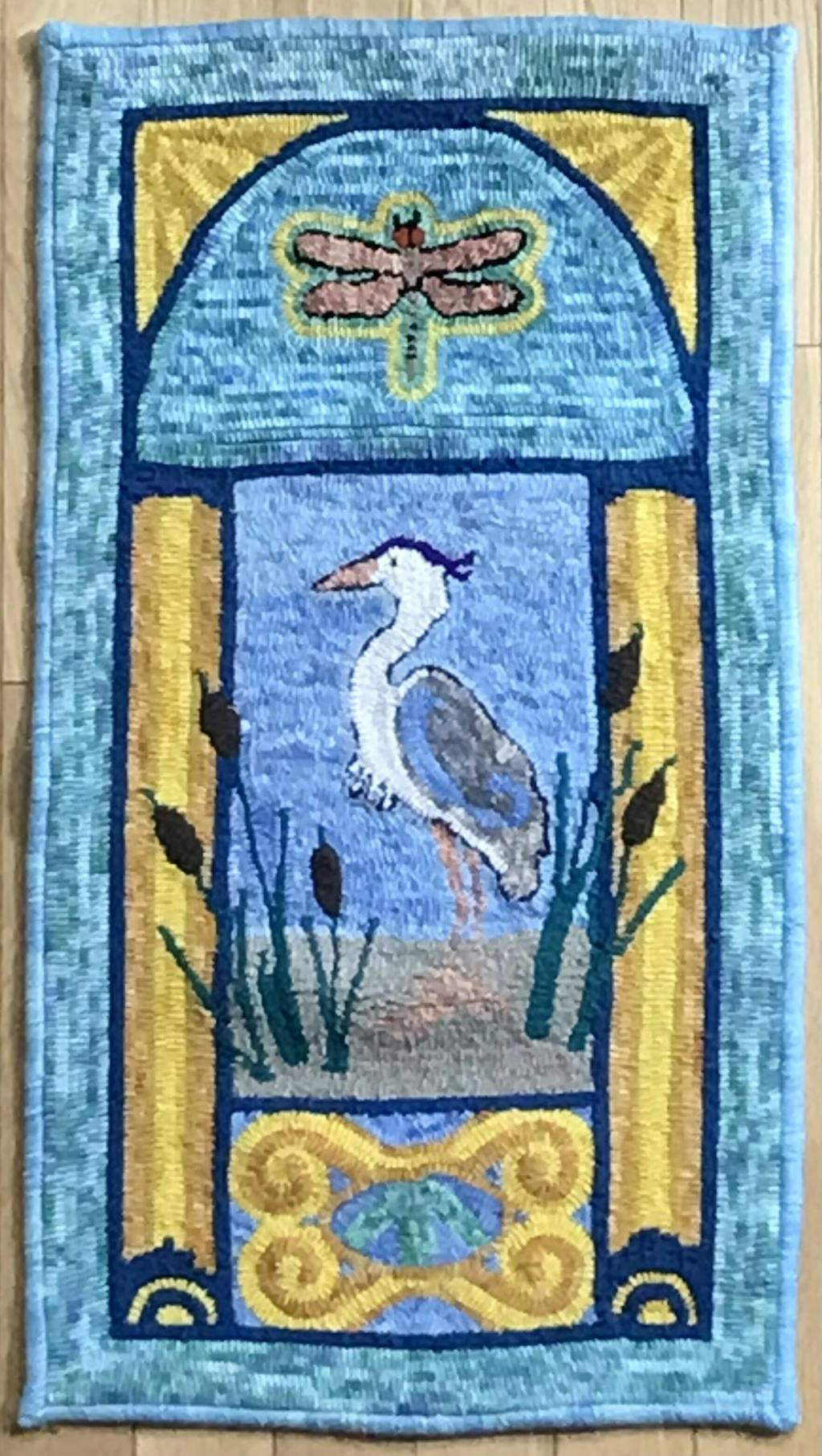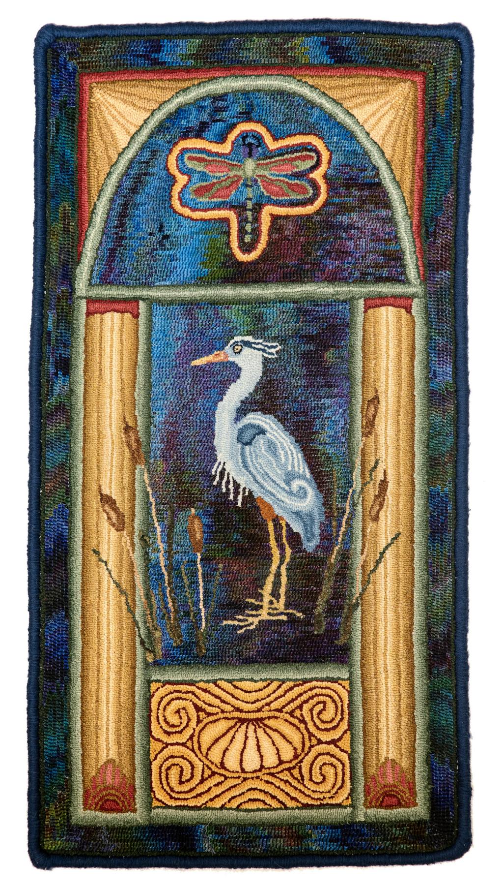 Art Nouveau Heron, rug hooked by John LeonardArt Nouveau Heron, rug hooking pattern