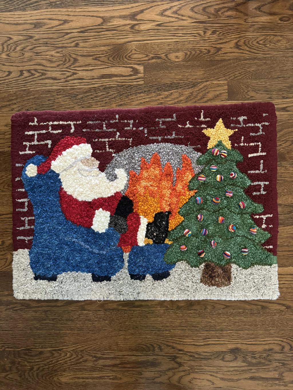 Santa by the Fire, rug hooked by Deena SchafferSanta by the Fire, rug hooking pattern