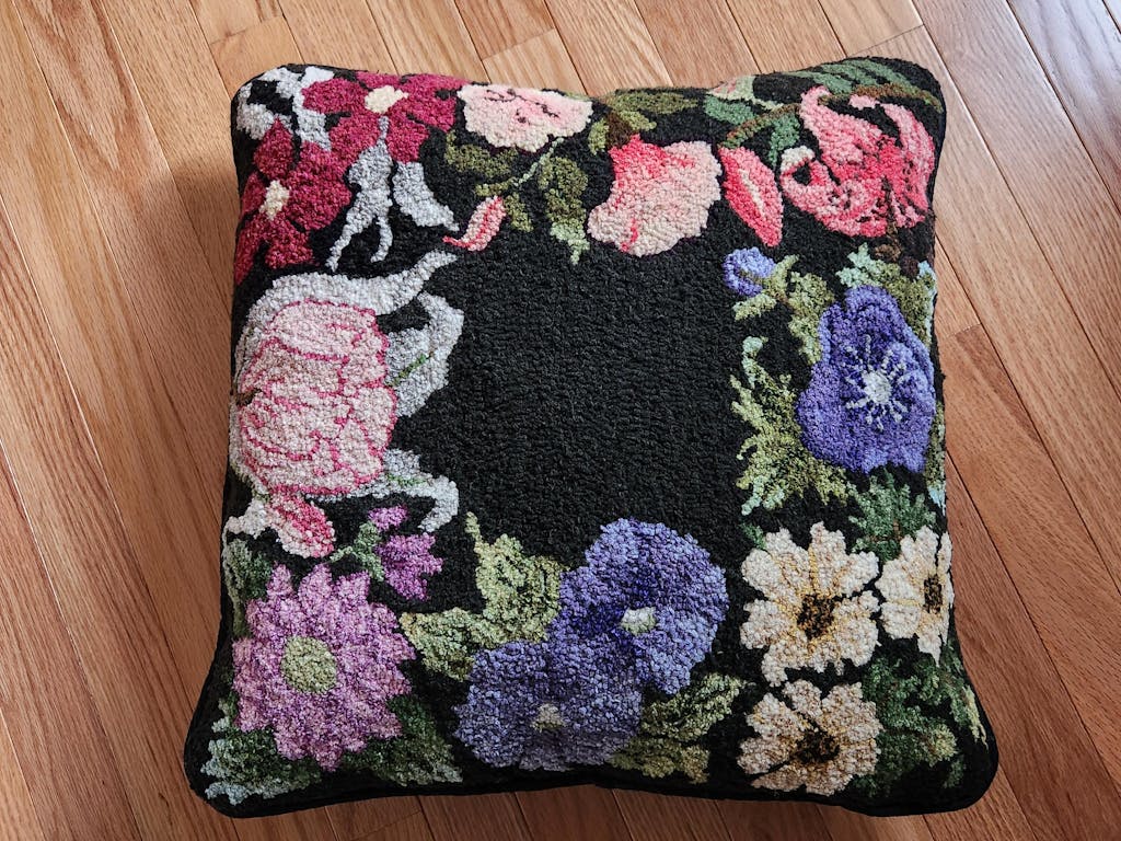 Ruthie Rose, rug hooked by Vivily PowersRuthie Rose, rug hooking pattern