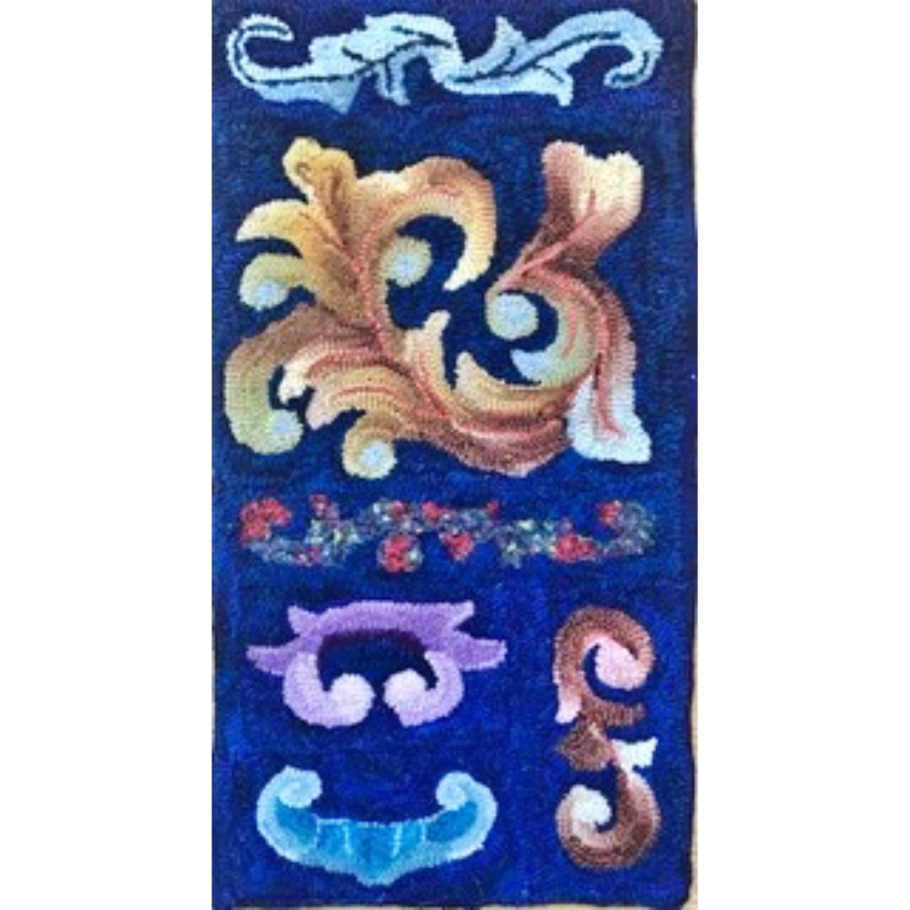 Scroll Sampler, rug hooked by Kathryn Kovaric