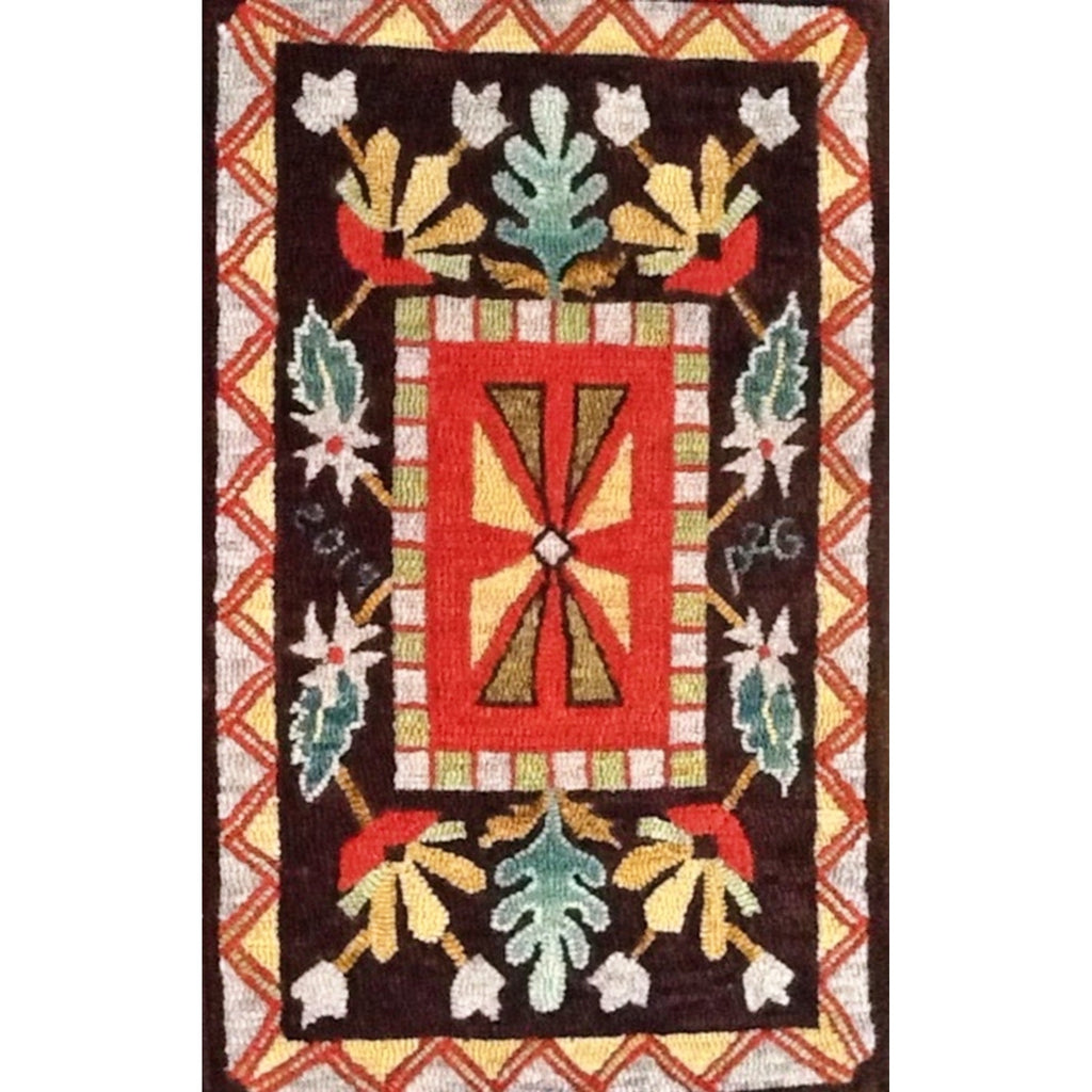 Stained Glass Mosaic, rug hooked by Stacey WattStained Glass Mosaic, rug hooking pattern