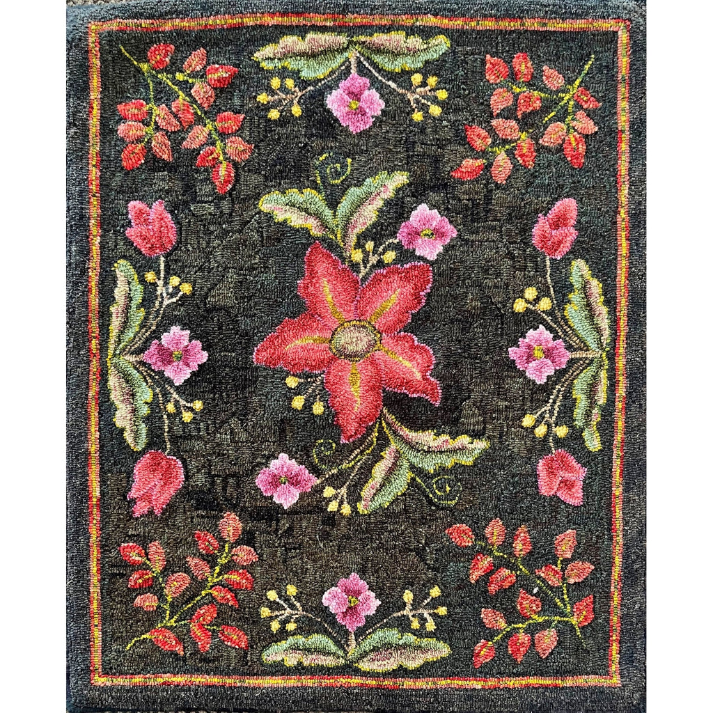 Crewel - Queen Anne Footstool Pattern, rug hooked by Jane McGown Flynn