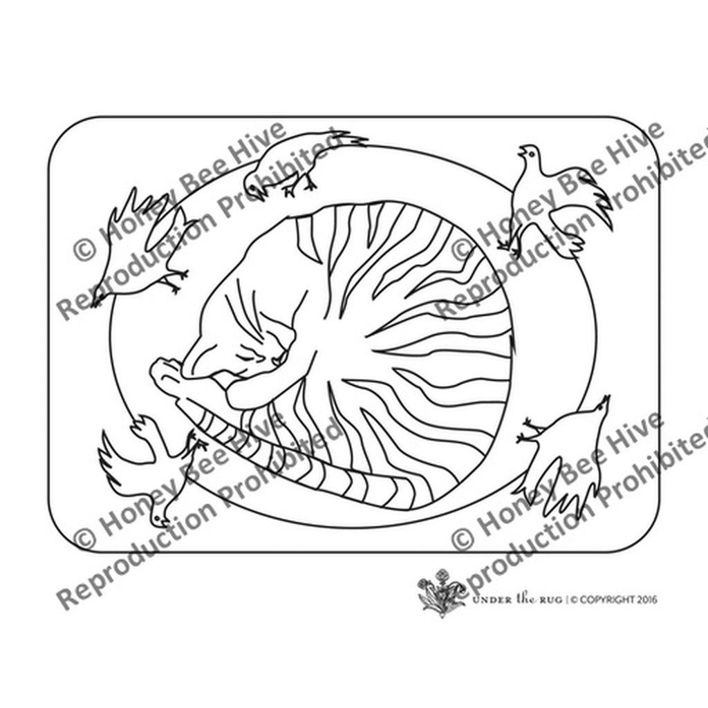 Life is Emusing, rug hooked by Tricia MillerLife is Emusing, rug hooking pattern