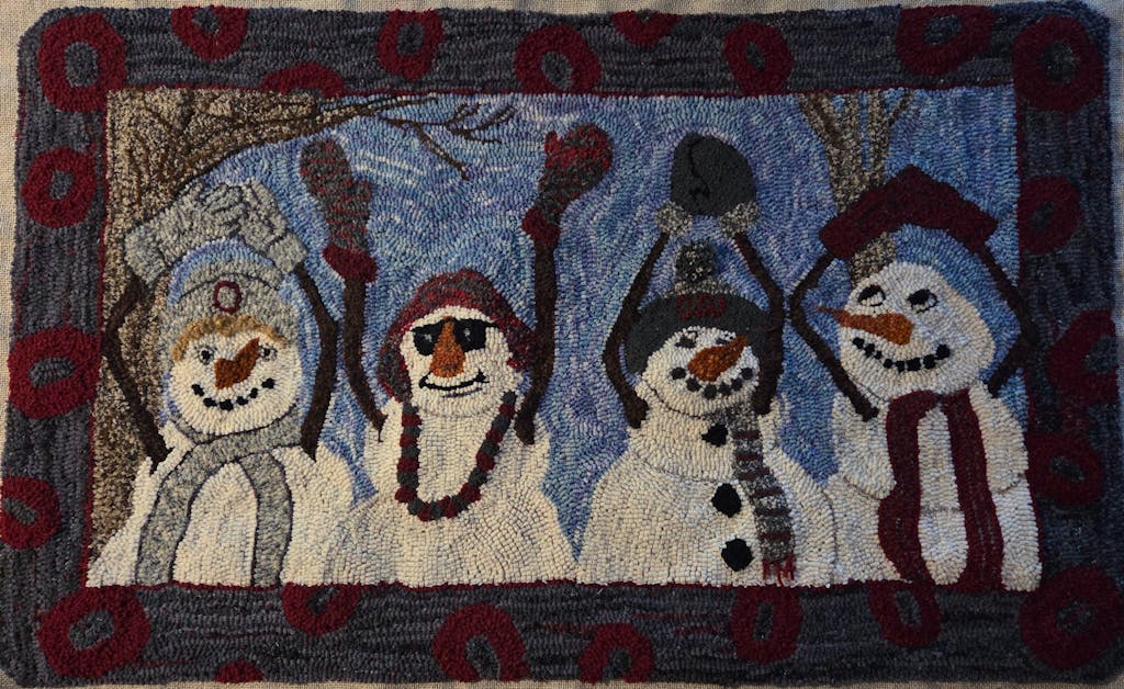 What a cute, fun pattern. Lots of room for creativity. I added a sculptured pom pom to the beanie cap, fringe to a scarf and blonde 'hair' for one snowman. Did this for a gift to daughter who is OSU grad and SIL who is a big OSU football fan
