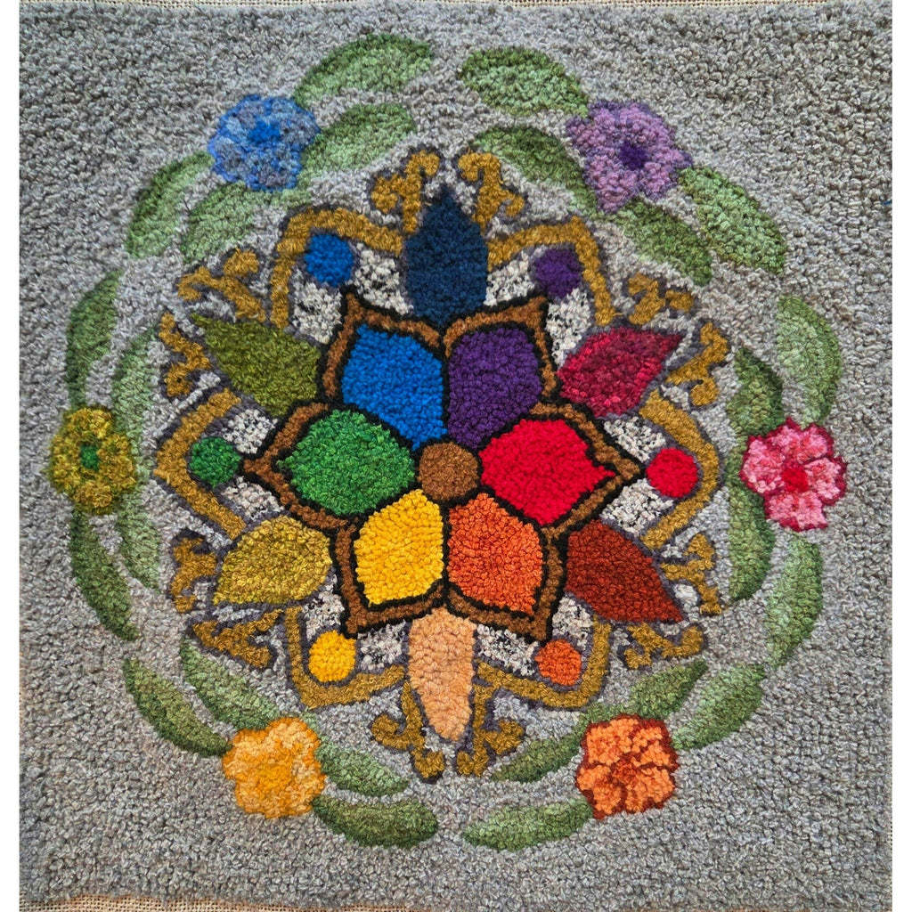Stained Glass Mosaic, rug hooked by Stacey WattStained Glass Mosaic, rug hooking pattern