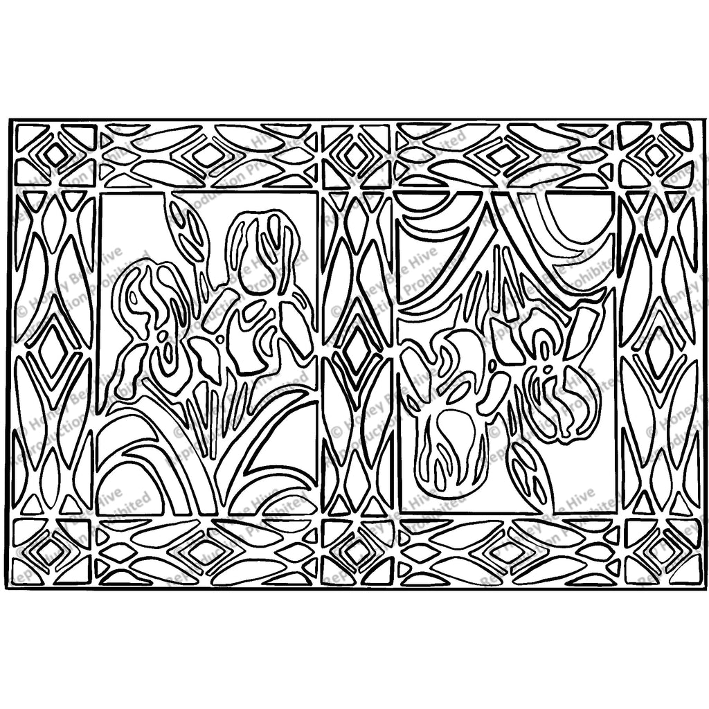 Iris Mosaic, rug hooked by Margaret BedleIris Mosaic, rug hooking pattern