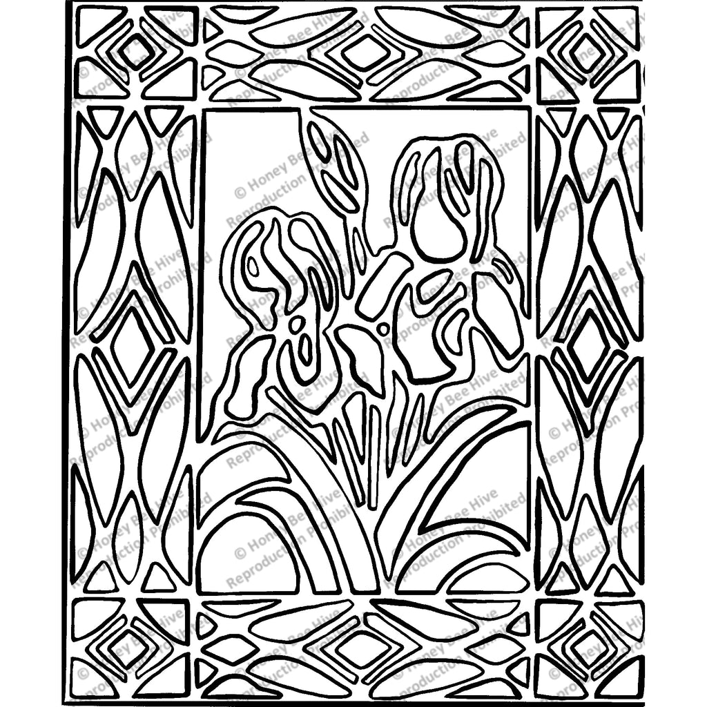 Iris Mosaic, rug hooked by Margaret BedleIris Mosaic, rug hooking pattern