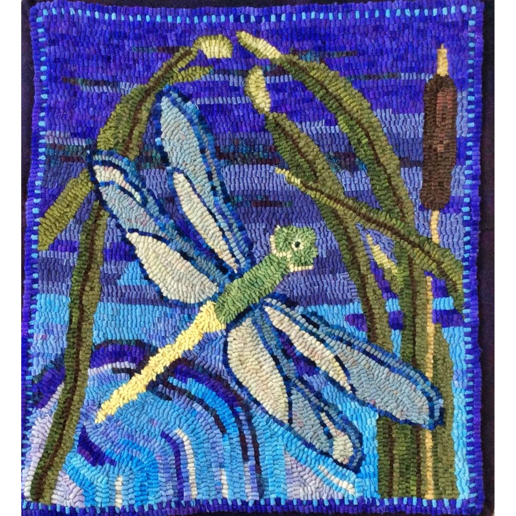 Dragonflies, rug hooked by Rita AndersonDragonflies, rug hooking pattern