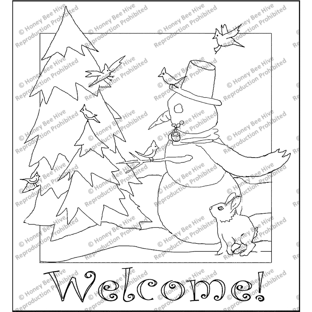 Snowman Welcome, rug hooked by Vivily PowersSnowman Welcome, rug hooking pattern