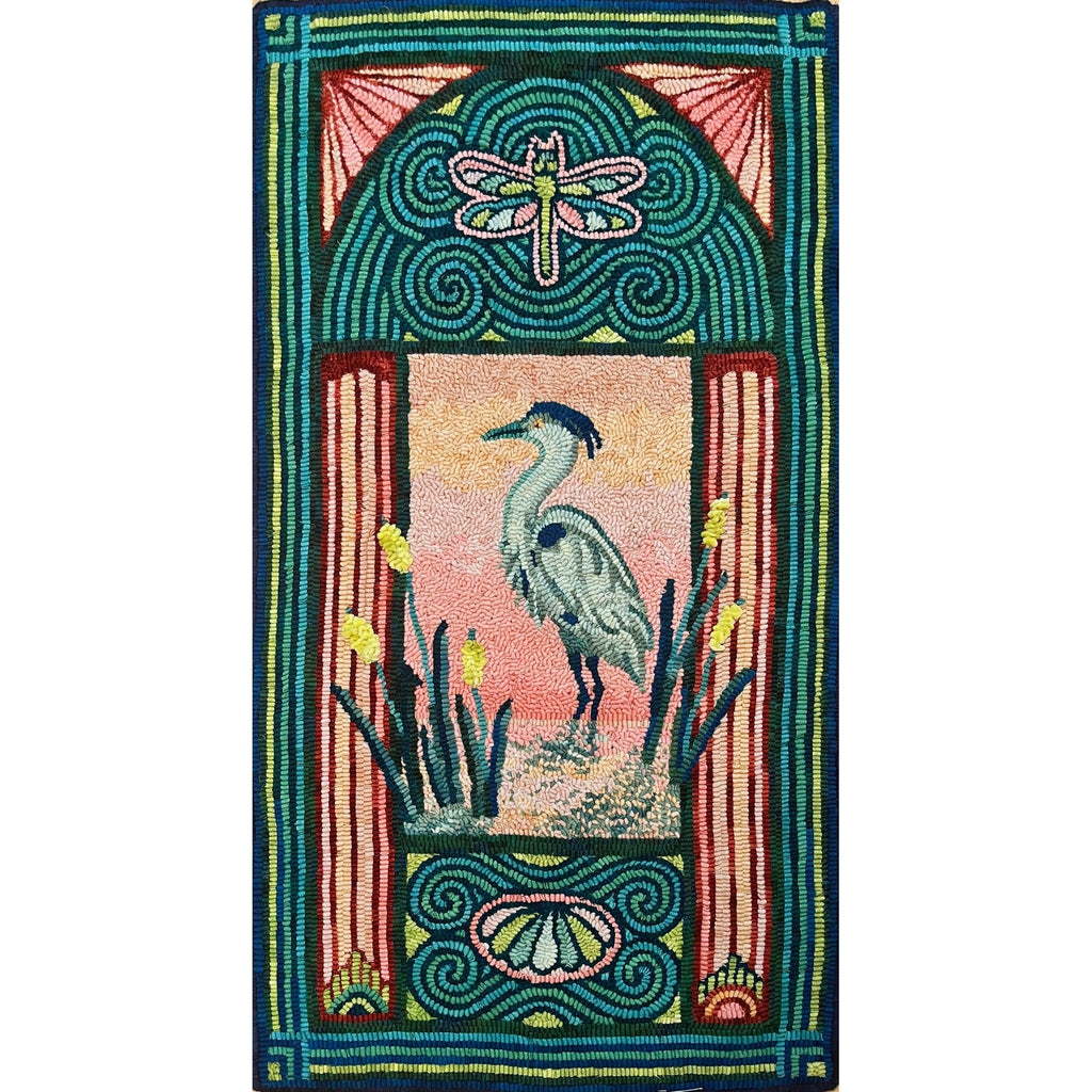 Art Nouveau Heron, rug hooked by John LeonardArt Nouveau Heron, rug hooking pattern