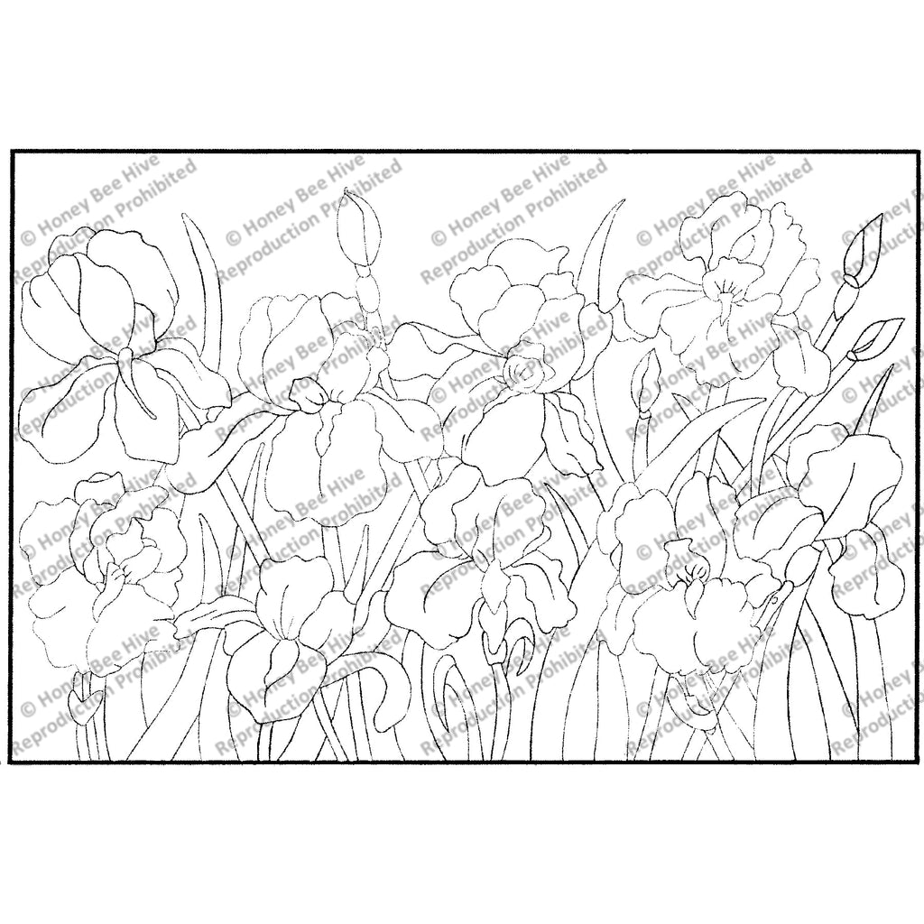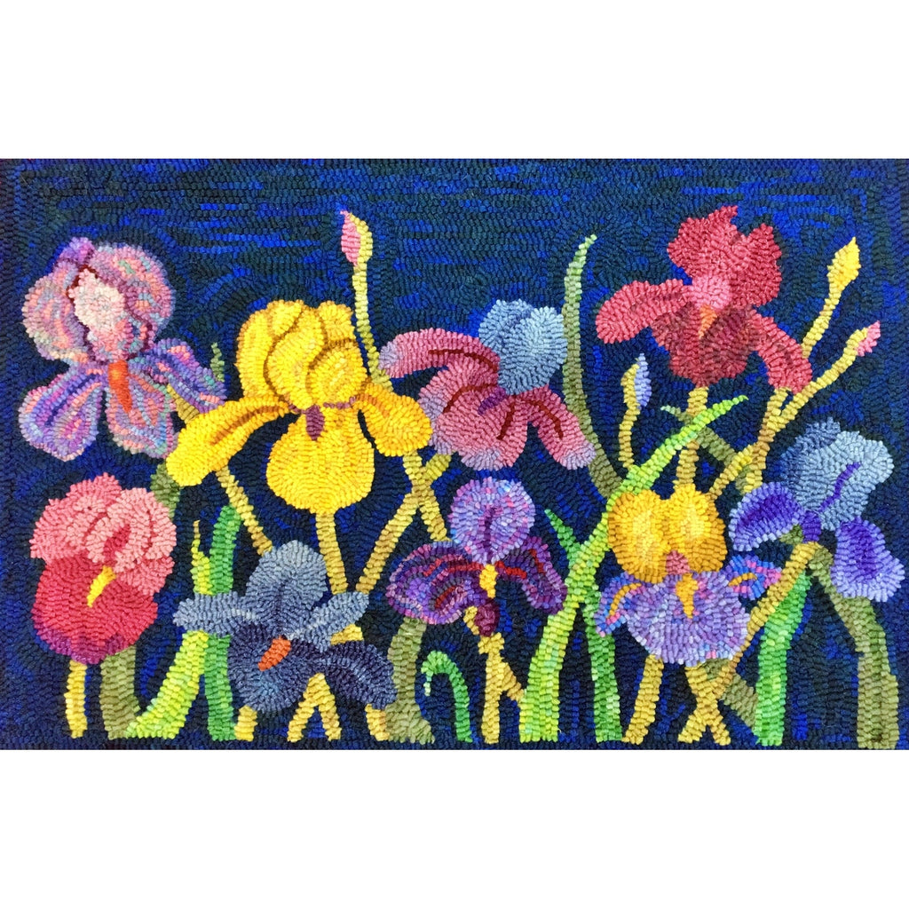 Irises, rug hooked by Karen MaddoxIrises, rug hooking pattern