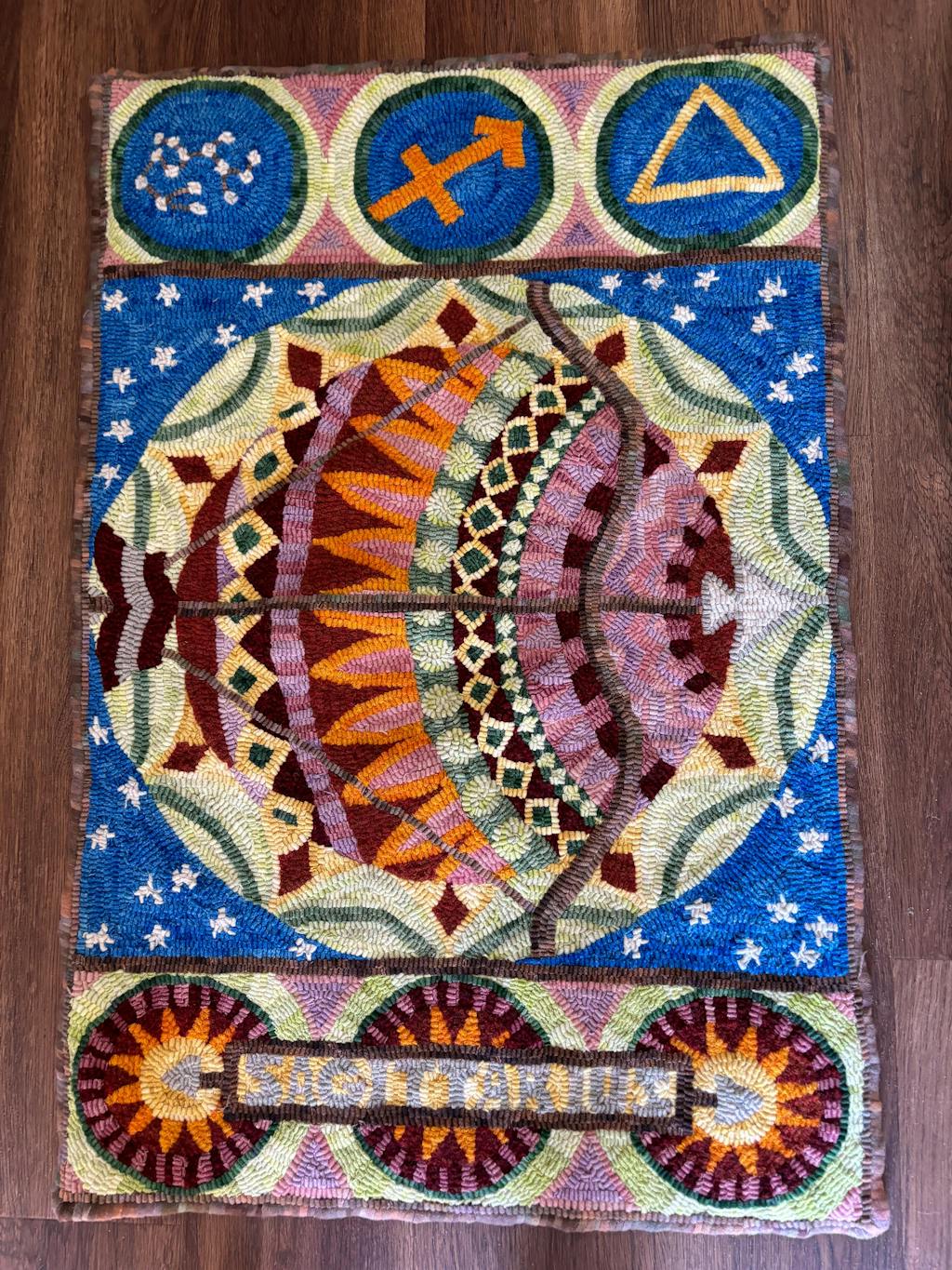 Sagittarius, rug hooked by Dawn GraySagittarius, rug hooking pattern