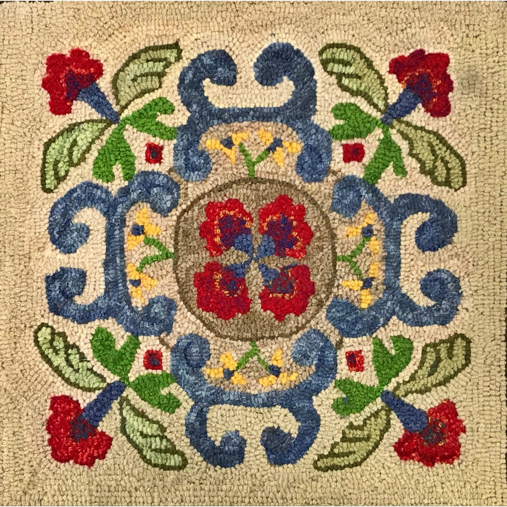 Ruthie Rose, rug hooked by Vivily PowersRuthie Rose, rug hooking pattern