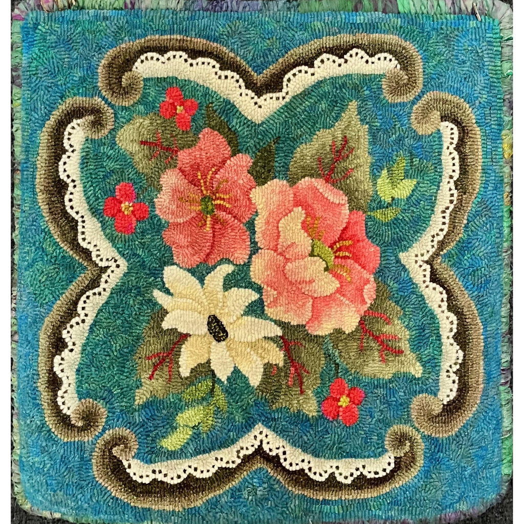 Ruthie Rose, rug hooked by Vivily PowersRuthie Rose, rug hooking pattern