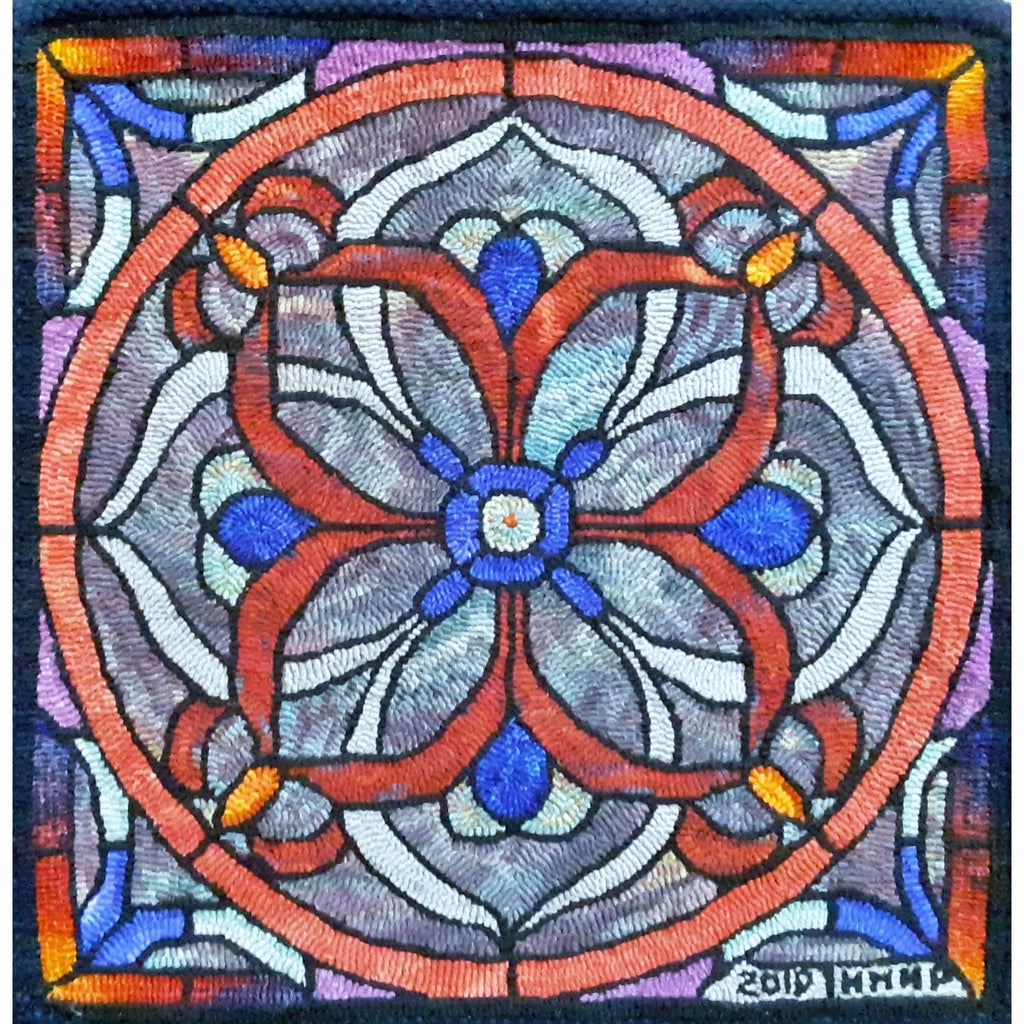 Stained Glass Mosaic, rug hooked by Lori Rokusek
