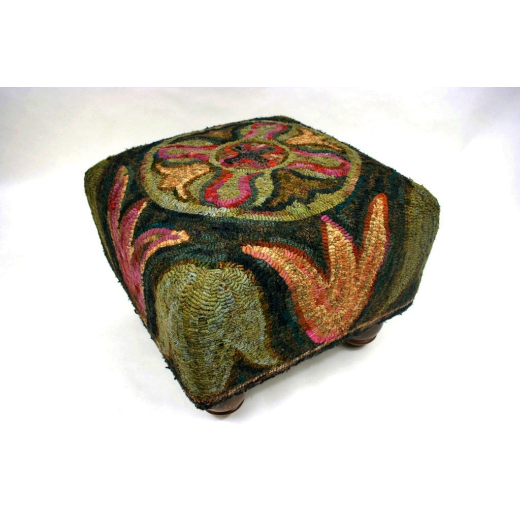 Crewel - Queen Anne Footstool Pattern, rug hooked by Cheryl SingleyCrewel - Queen Anne Footstool Pattern, rug hooking pattern
